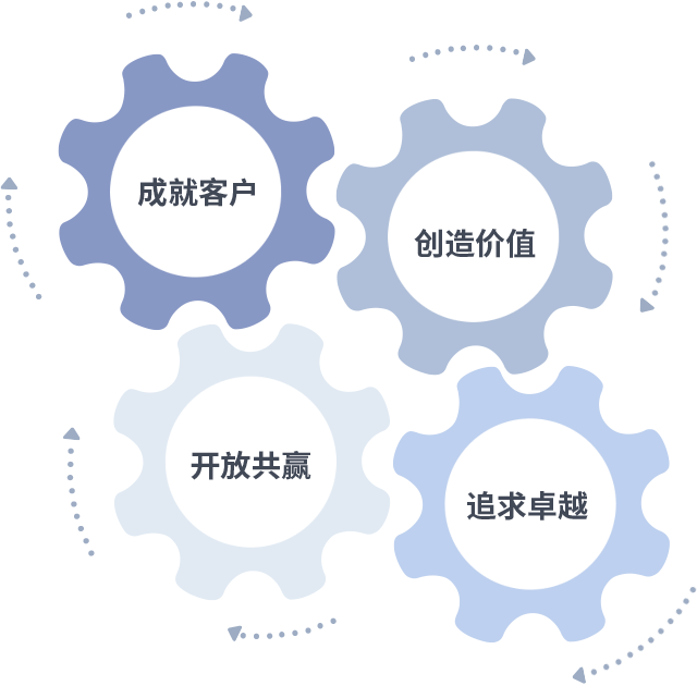 成就客户是一切决策的出发点,创造价值是衡量所有工作的标准,追求卓越是d88尊龙z6做事做人的态度,开放共赢是d88尊龙z6的格局也是最终的结果。价值观的齿轮环环相扣,推动着组织里的每个人不断向前。
